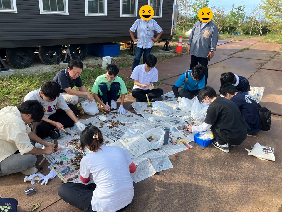10月12日に、神通川を楽しむ会主催の「クルミで遊ぼう」が行われました。「クルミで遊ぼう」は、神通川河口でクルミを拾い集め、調理することを通じて、クルミと流域保全についての理解を深めるイベントです。今年は、同大学の呉研究室と久加研究室と一緒に、初めて参加させていただきました。