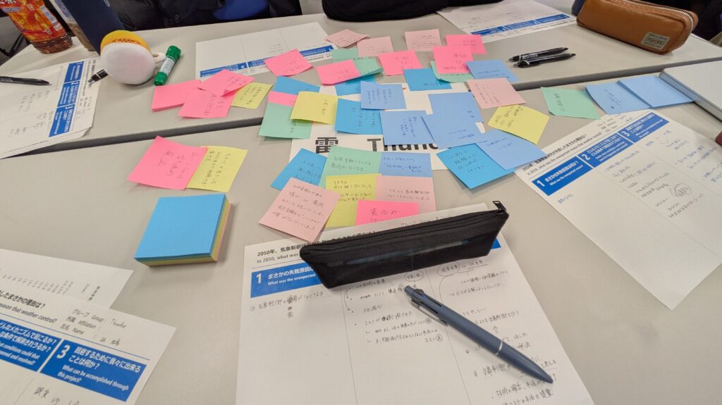 グループ討議では、「2025年、気象制御研究が失敗したまさかの理由は?」という議題で、皆さんと意見を出し合いました。
