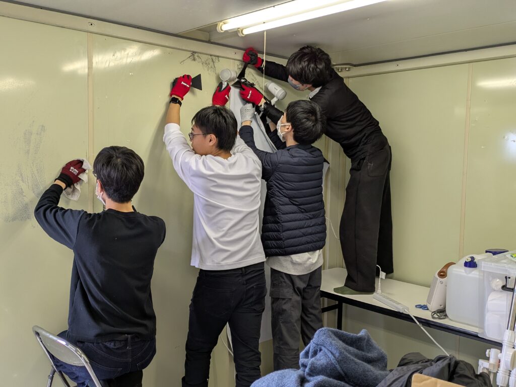 観測小屋の中では、壁に貼られていたホワイトボードをはがす作業を行いました。ホワイドボードが壁に対して強力に張り付いていたので剥がすのがとても大変でした。
